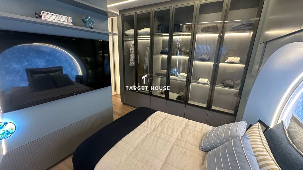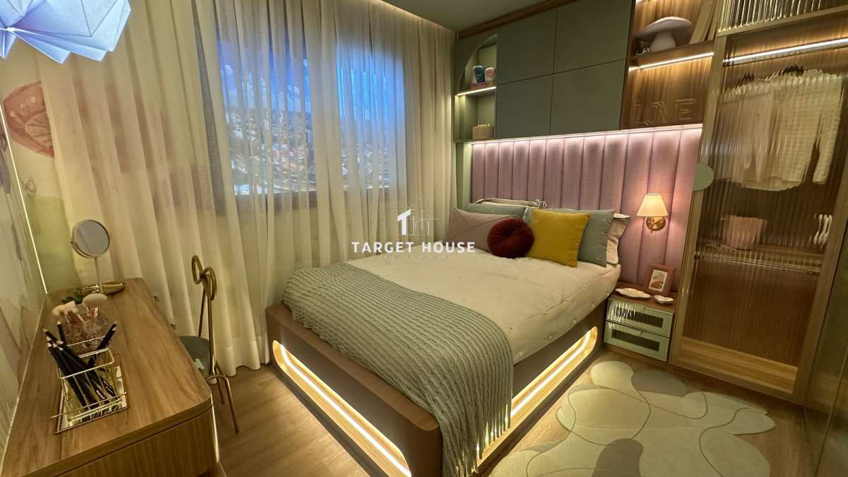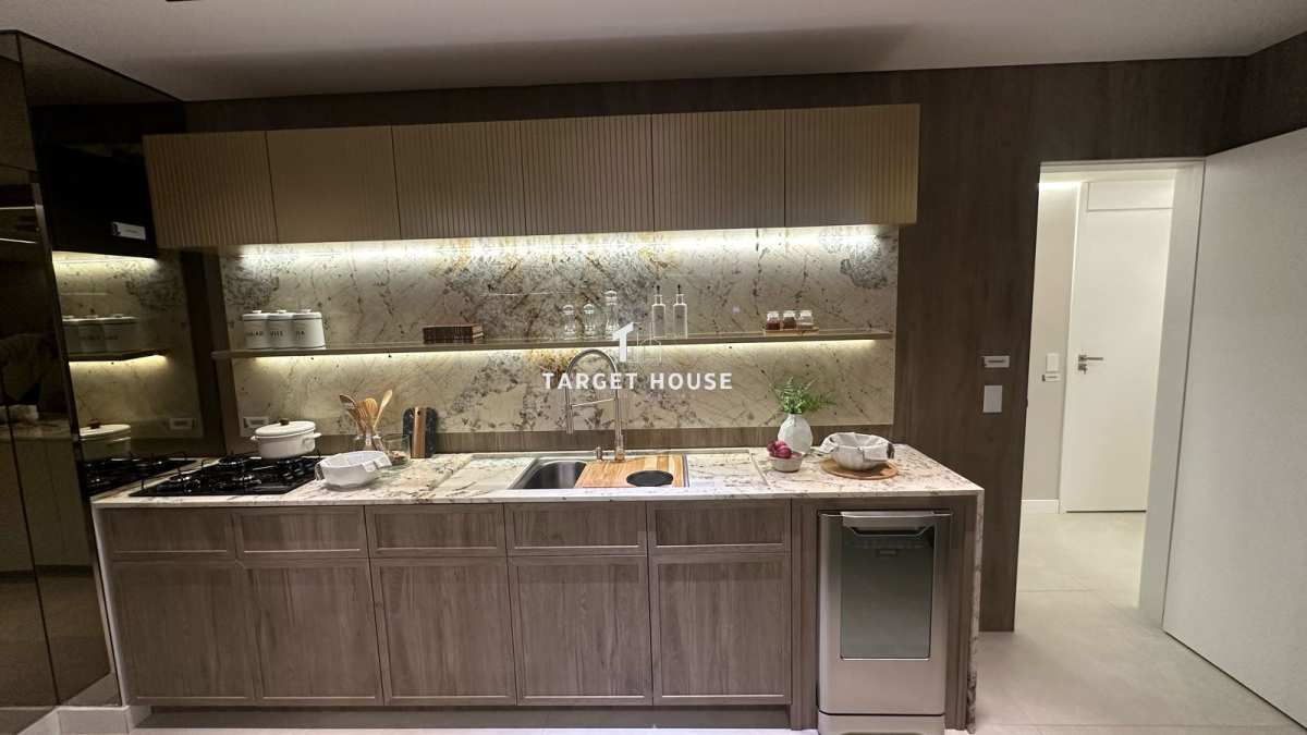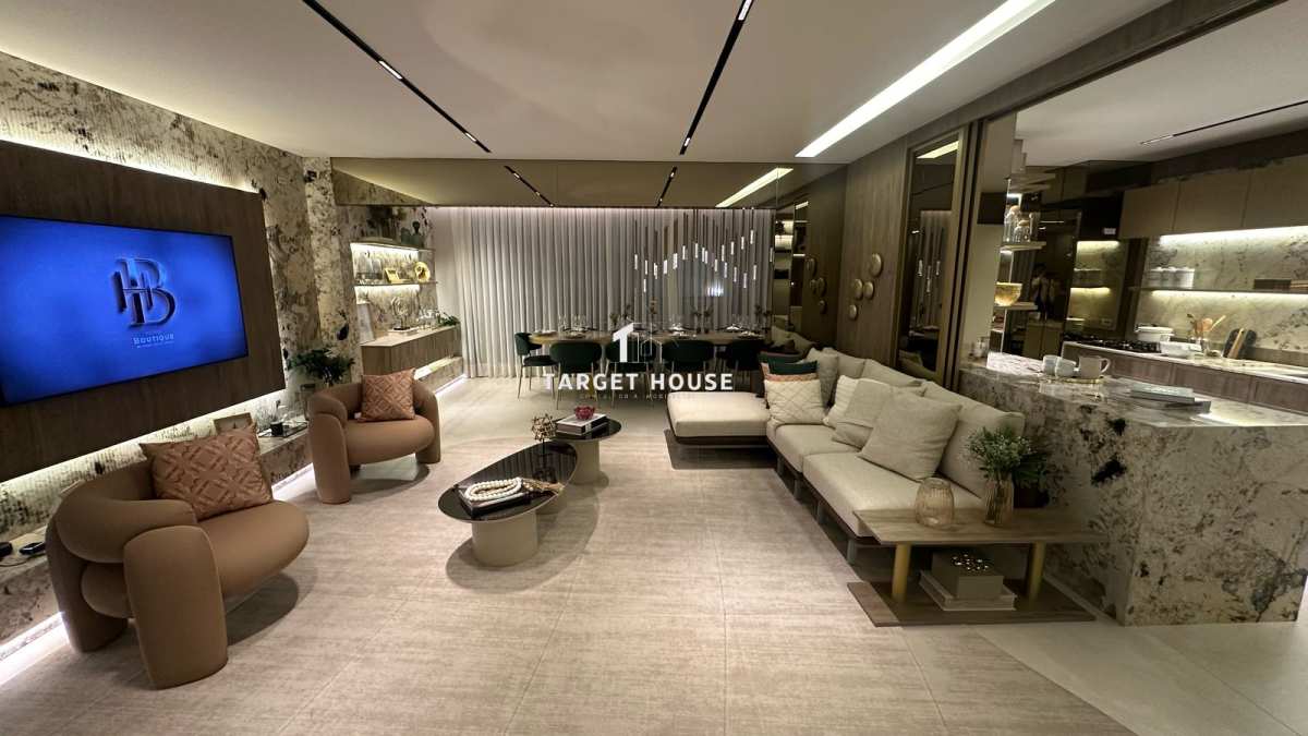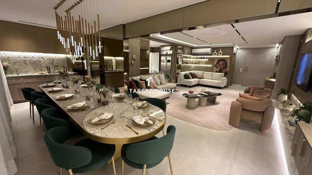 A cozinha é moderna e bem distribuída, com excelente iluminação natural. A área social é integrada, favorecendo a convivência e criando um ambiente acolhedor e sofisticado.