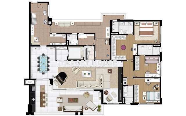 Com espaço suficiente para toda a família, a sala de jantar em conceito aberto e a cozinha gourmet são perfeitas para receber amigos e entes queridos. As comodidades incluem 3 vagas de garagem, garantindo praticidade e segurança.