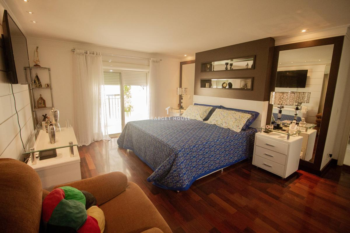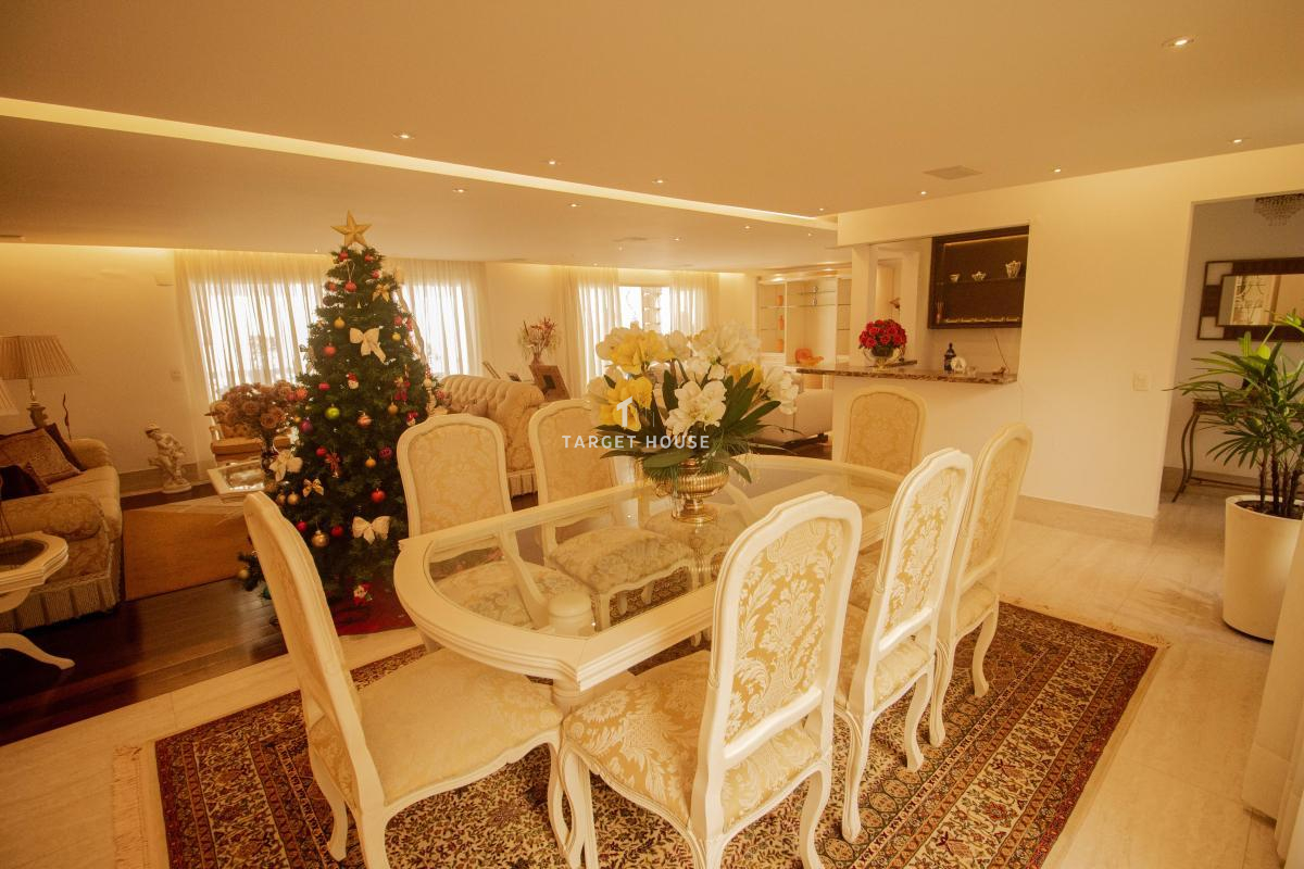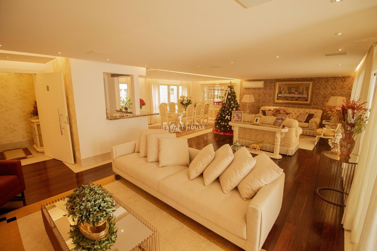O imóvel tem 4 quartos, sendo 4 suítes, possui 7 banheiros, 2 salas e 4 vagas de garagem.