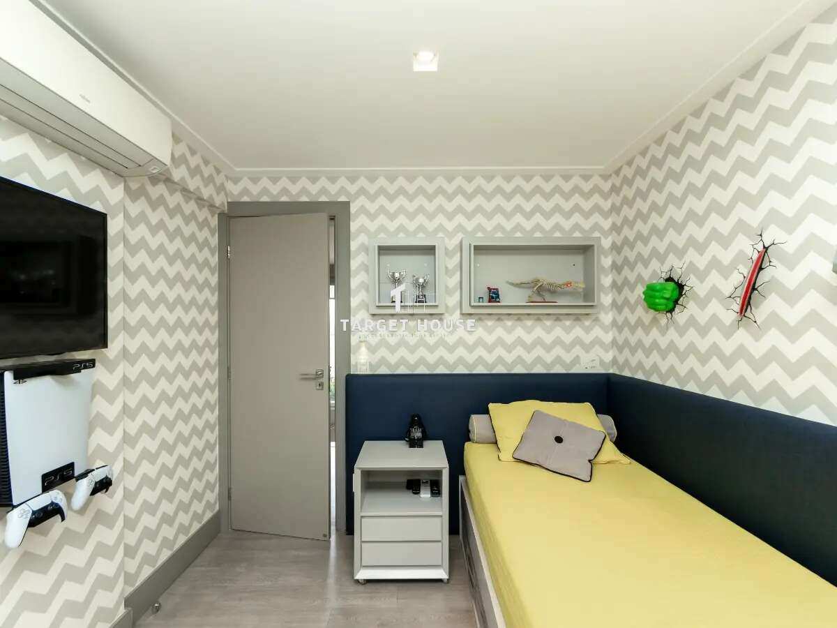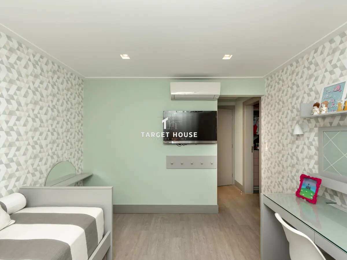 No andar superior, há três suítes privativas, todas com closets Ornare, que aliam funcionalidade e elegância, otimizando cada espaço. Todas as suítes são climatizadas com ar-condicionado para maior conforto.